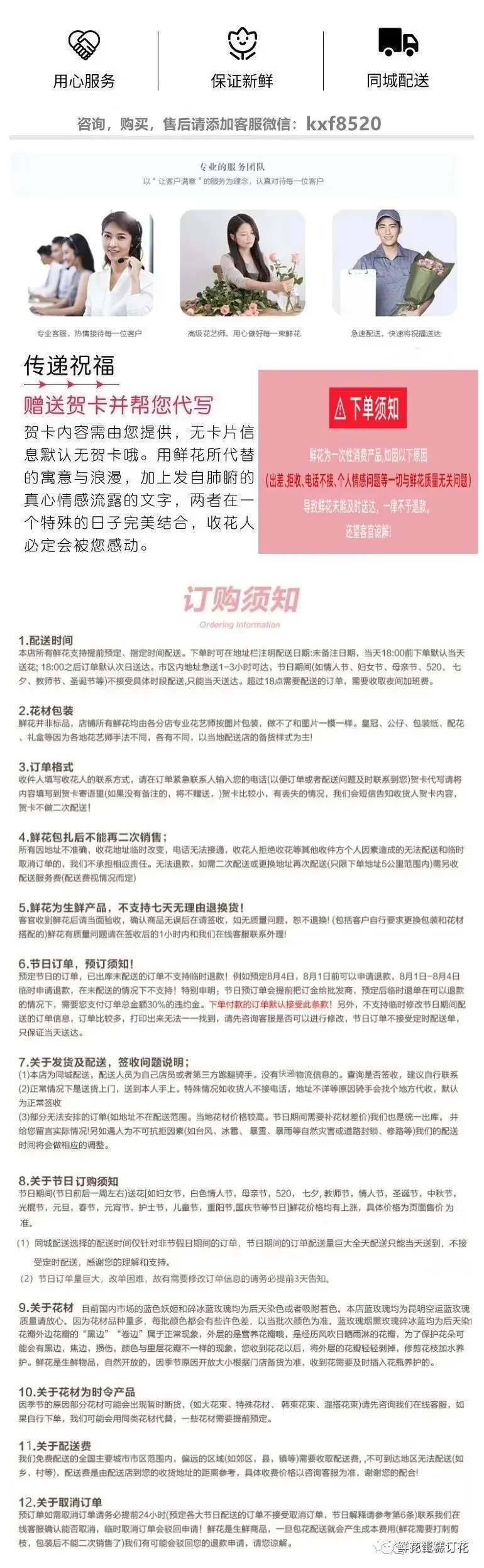 鲜花订花送花客服微信:1050547197