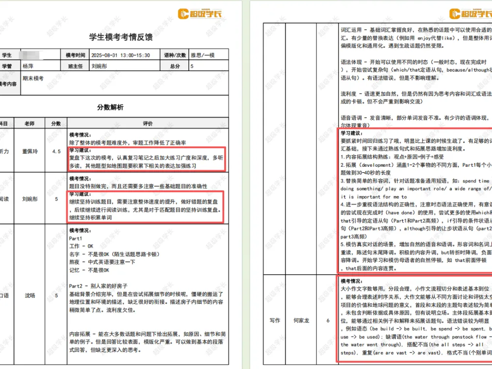 高分冲刺支持:针对口语、写作难点,提供精细批改、口语对练与模考演练