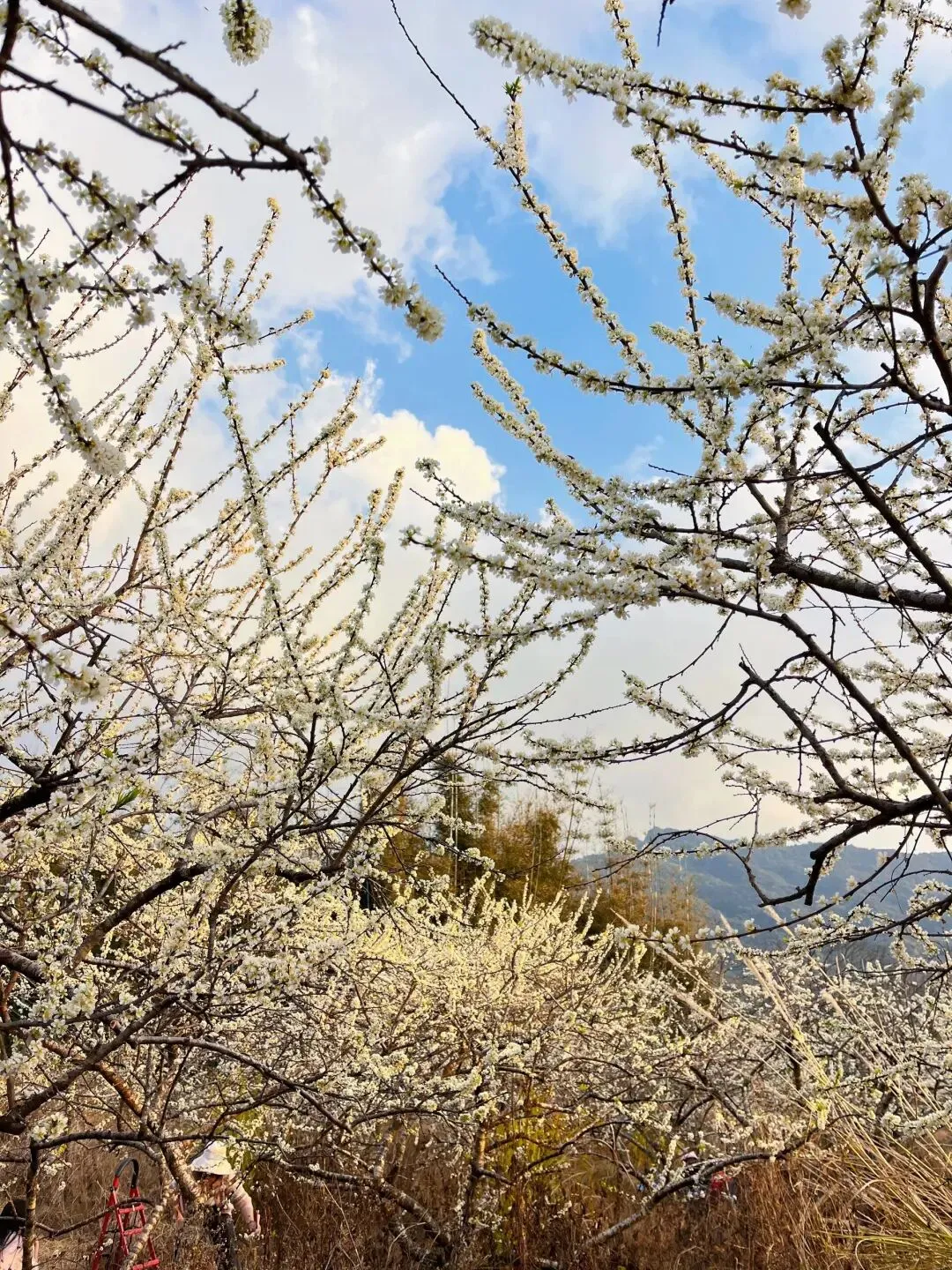 ☁️这不是星星点点的白,而是像柔软的云絮,又像厚重的初雪,一层层、一叠叠铺满了起伏的丘陵。李花无处不在,多到屋前屋后、小桥边、甚至厕所旁都有的程度~
