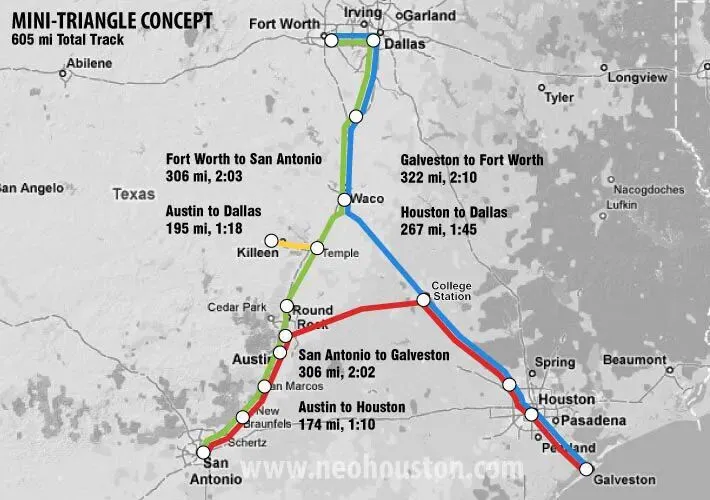 更长远的规划,即社交媒体上热议的“迷你三角概念”,则是将高铁网络进一步延伸至奥斯汀和圣安东尼奥,最终形成一个完整的闭环。