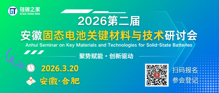 由硅碳之家主办的“2026安徽第二届固态电池关键材料与技术研讨会”将于3月20日在安徽合肥召开,大会以“聚势赋能 创新驱动”为主题,会议重点聚焦固态电解质、正负极材料、界面工程、智能制造及产业化进展等热点议题,分享固态电池技术路线选择与最新产业化动态,探讨固态电池的未来发展趋势及挑战,为学术界和产业界实质性对接交流提供平台和合作契机,开展产、学、研合作,助推固态电池产业商业化发展提速。