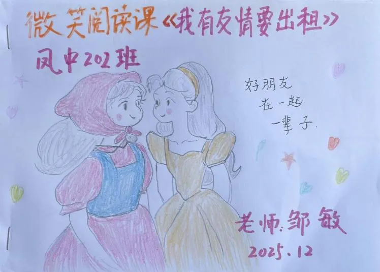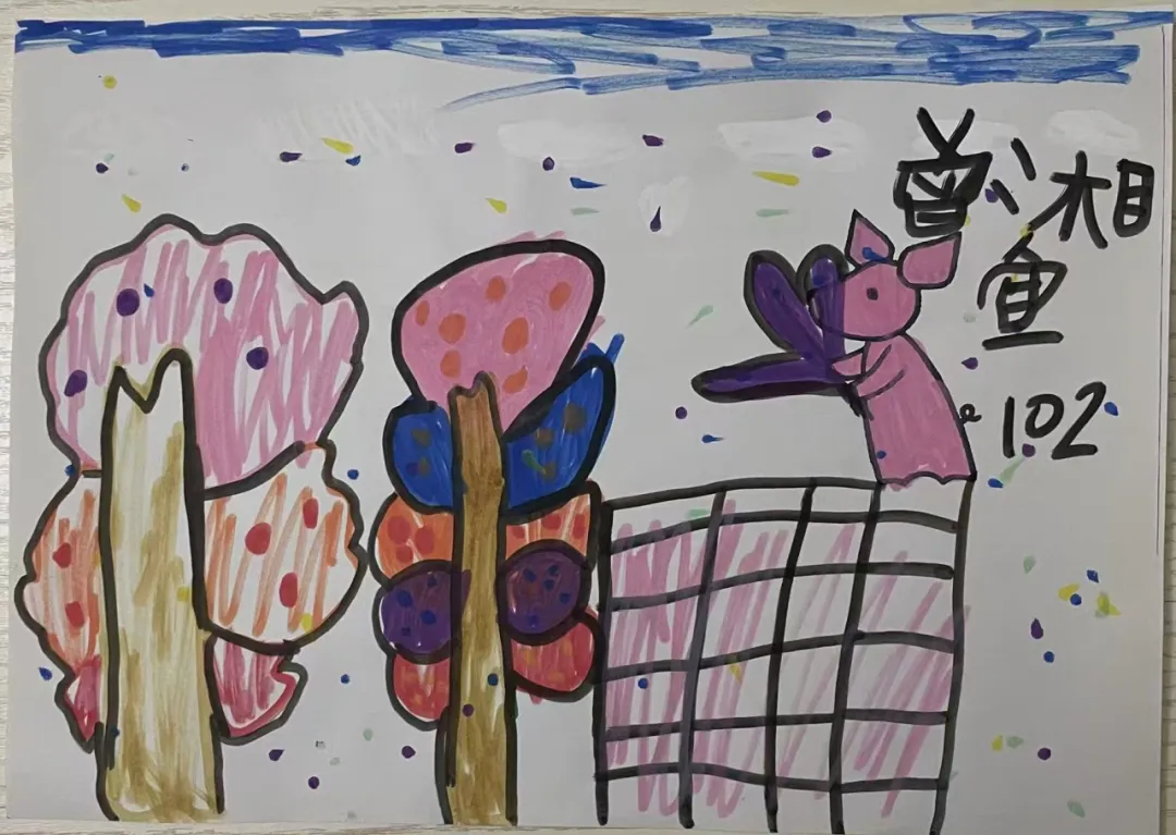 旅程中发生的神奇事一定是数不胜数,经常从孩子们口中冒出来的话语让我有时会想,这是一年级的孩子吗?原来孩子们都是哲学家吧?在有一次给一年级讲《米莉的帽子变变变》绘本时,因为小小主角戴着一顶想象的帽子回家,问爸爸妈妈喜不喜欢她的帽子,妈妈刚说完没有看到帽子呀,立马又停顿了一下,微笑着说:“哇,果然是一顶神奇的帽子呢!”在读到这里的时候,我停下来问了一下,为什么妈妈会这样的表现,其实我本来还想着慢慢引导一下的,结果一个小男生很是沉稳地回答说:“她的妈妈很好,在配合她,因为她怕她的女儿会失望。” 哈哈,直接把我惊到了,我忍不住和他击了一下掌,让我多么地好奇想再了解他们多一点!还有在给二年级孩讲人际交友主题时,让大家说说自己眼中的真正的友情是什么样的?有个女孩子也是淡定且笃定地说:“我觉得真正的友情就像一棵小树苗,它会慢慢长大,变成一棵大树,永远都在那里,不会改变!”我就这样贪心地享受着这些智慧的孩子们带给我的惊奇和震撼,也同时开启了重新养育自己的行程。在讲述绘本的课堂中,我们都不会预设任何标准答案,都是希望孩子们能充分地表达自己而不受约束,我在绘本课的进行之中其实也开始了自己的学习,就像孩子们每次的读写给作品,我一开始只是收集起来装订好向他们展示,后来我又开始给每次的作品画上相应的小画,结果孩子们都非常喜欢,除了表达他们盛大的赞美外,也期待着下一次我都画上画,记得有一次我在课程结束后问了一下,想让我在他们的作品封面上画什么?结果有个小女孩大声地说:“老师想画什么就画什么!”让我不禁莞尔一笑,和她隔空拍了一下掌,还表达了我的谢意。就这样在绘本和课堂的滋养下,我和孩子们都在尽情地享受和共同成长着。
