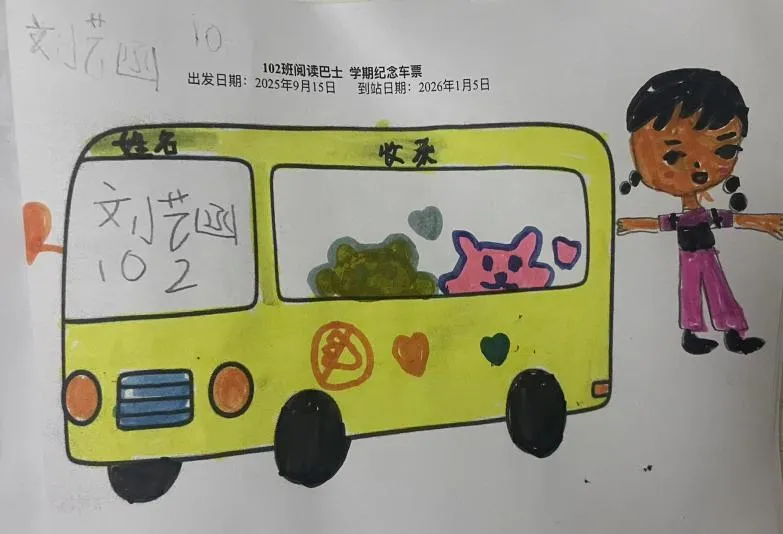 要想想54节课,一百多个孩子,那些个快乐温馨的时光哪能是几句话就能表达完全的呢?我只知道我就像是在一片大海里徜徉,刚开始总是想该怎么把控课堂纪律,到后来意识其实本来并不存在不守纪律的孩子,那是我应该要完成的功课,是我应该要去摸索在我的课堂上能吸引到每个孩子的方法。而我在和孩子们相处的过程中,孩子们的真诚,毫无保留地好奇,直接的情感表达,就像镜子一样照见了那个也如孩子一般的我,给到我疗愈的力量,我真是在这个过程中重新开始养育自己了,被他们的童真所感染,而我也自然而然地呈现了完整、本真的生命状态,与孩子们渡过了这一段相遇与共创的生命。要知道我每次走在操场上时,那远远看到我就飞奔过来的身影会让我只想让时间再多停留一会儿,我会稳稳地站在那里,享受完他们挂在我身上,环抱着我的童心后,再和他们一起走进教室。每次上完课后,好几个孩子都会涌过来帮我收拾书本,再帮我背起包包,硬是要送我走过操场,经常会让我恍惚我好像在享受着明星的待遇,哈哈。而我的努力看见每个孩子们的初心,也经常会让我会心一笑。记得凤中102班有个孩子是在我上到第三节课的时候新转进来的,不知道是我哪个无意的动作,让他感受到了被看见的力量,本来很是羞涩有点怯意的他从此成了播报我们的阅读巴士到了第几站的播报员,因为每次我一来,他就会马上跑过来告诉我今天是第几站,其实我也不知道他们是怎么记住这个次数的,因为我自己每次是因为有记录,而这个年龄的孩子还经常分不清一周、一月、一个学期、一年到底谁更长,但他们却清晰地记着这个每周才见一次的约会次数,或许这就是绘本的吸引、阅读的兴趣、还有那份发自内心的爱吧。