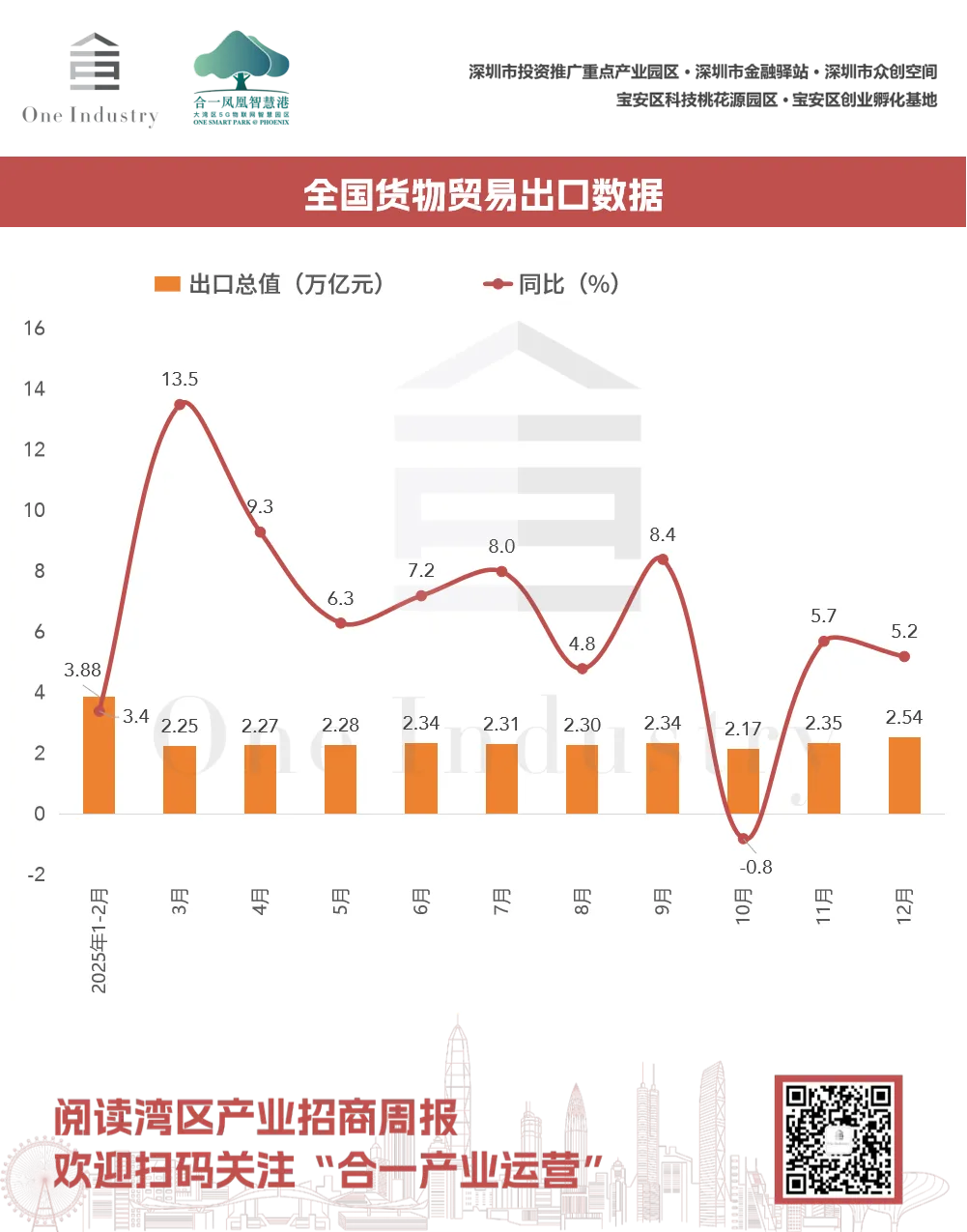 据海关统计,2025年全年,进出口总值45.47万亿元人民币,同比(下同)增长3.8%。其中,出口26.99万亿元,增长6.1%;进口18.48万亿元,增长0.5%。12月份,我国货物贸易进出口总值4.26万亿元,增长4.9%。其中,出口2.54万亿元,增长5.2%;进口1.73万亿元,增长4.4%。