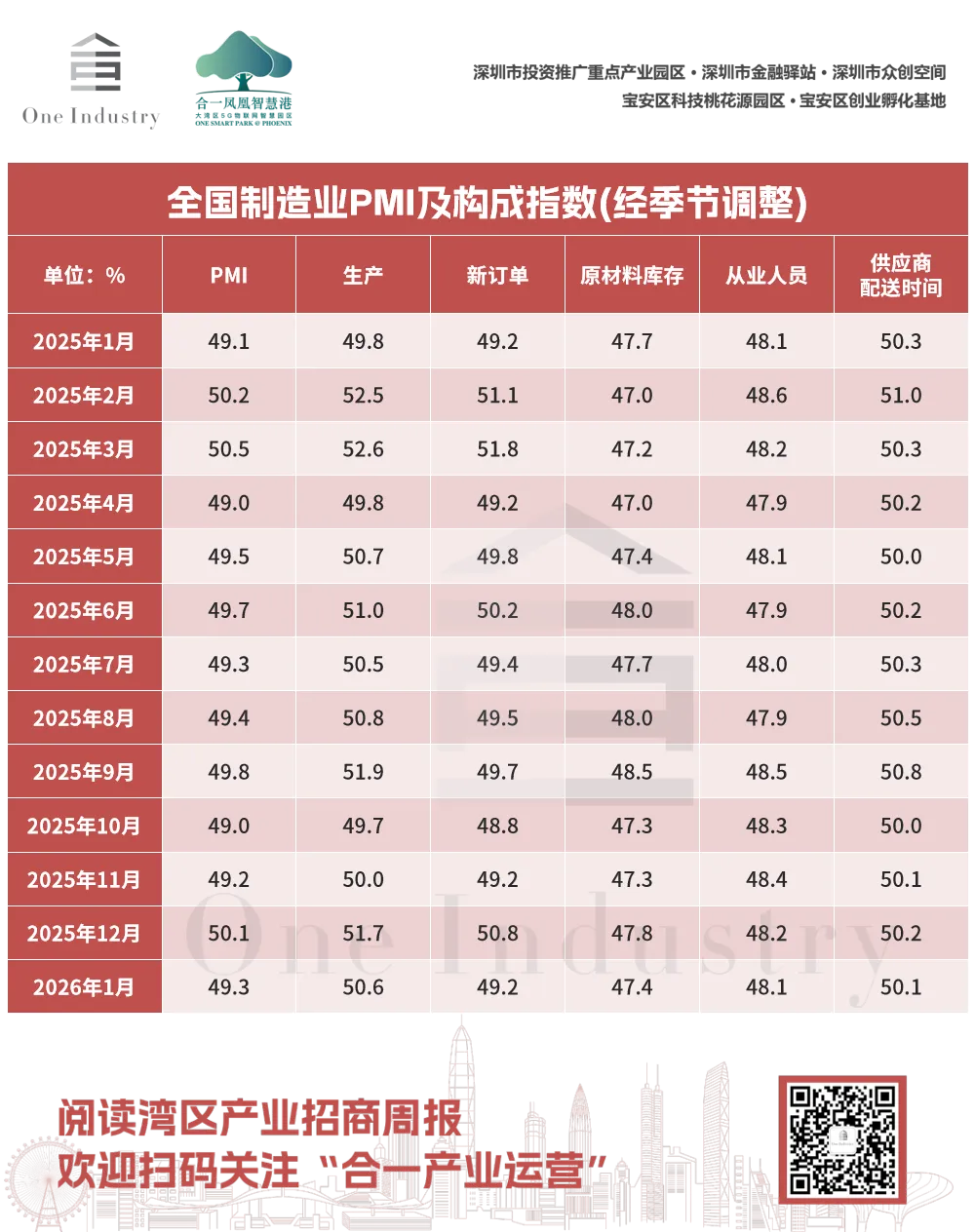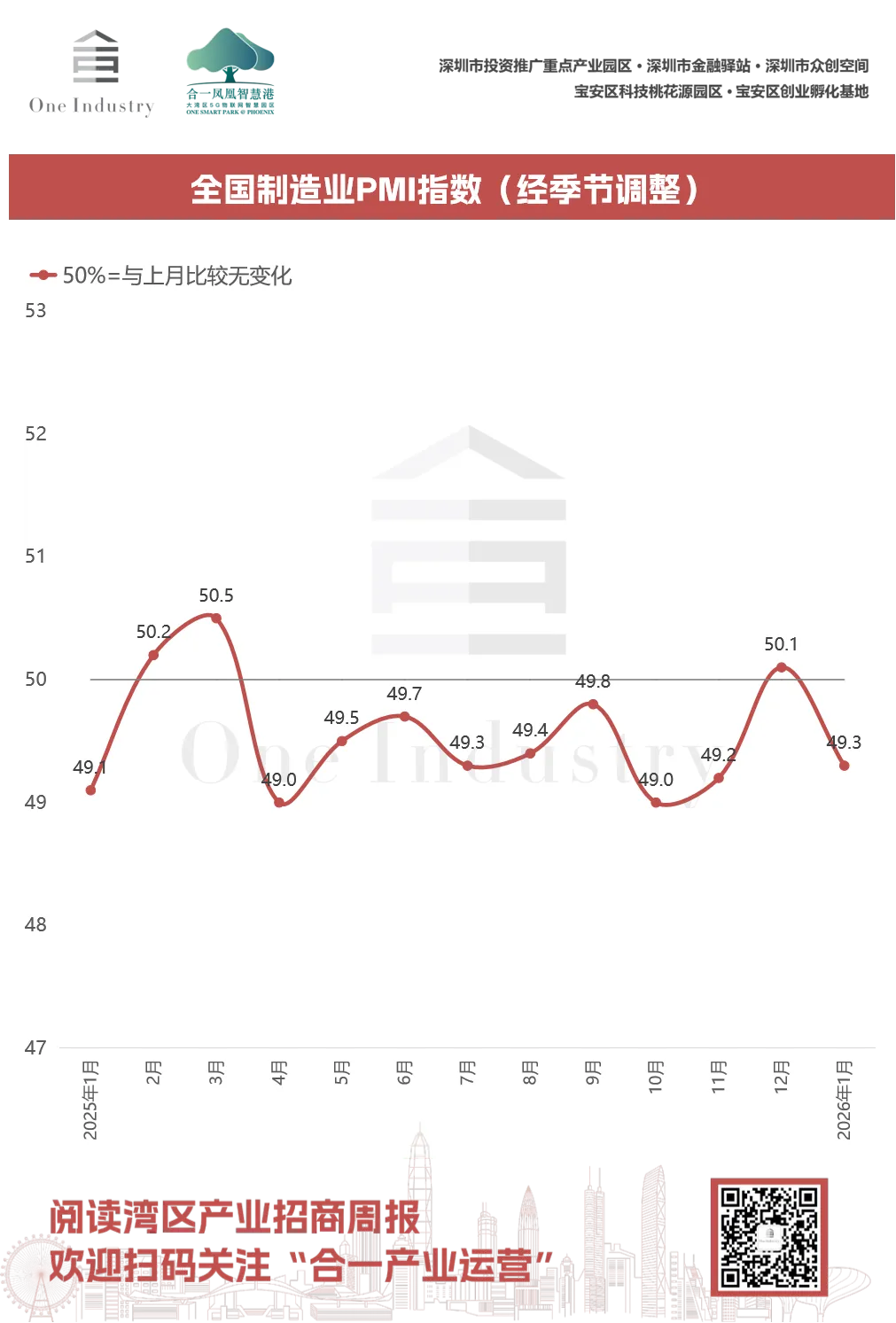 2026年1月份,制造业采购经理指数(PMI)为49.3%,比上月下降0.8个百分点,制造业景气水平有所回落。