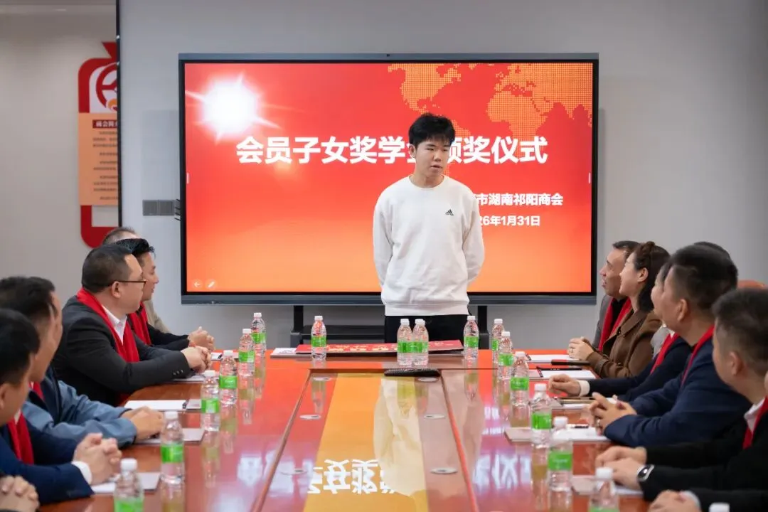 为弘扬崇文重教优良传统,激励广大会员子女勤学奋进、成长成才,切实落实商会暖心服务举措,2026年1月31日,东莞市湖南祁阳商会会员子女奖学金颁奖仪式隆重举行。会长张学军,第一执行会长黄昌宇,监事长严琼芳,秘书长唐燕峰,执行会长欧阳昊、陆君山、唐新文、王建军、李欢雄,顾问何云,常务副会长陈安云、黄志军、刘明,副会长张乐、王孟君、刘冬红、李宝华、曾高兴、朱海、蒋建、桂辉杰,理事郑文武、胡华峰、王东波,监事曾令林,会员蒋立奇及家人,秘书处齐聚一堂,共同见证荣誉时刻,为优秀学子送上祝贺与鼓励。
