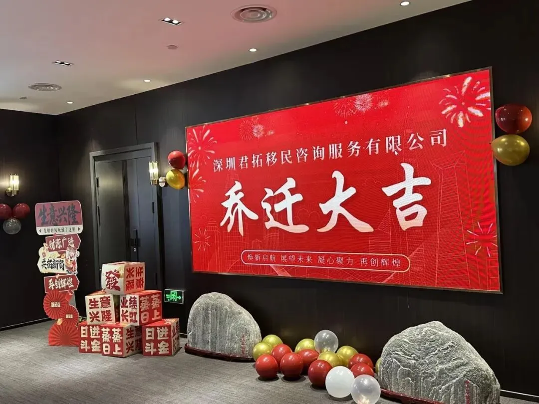 2026年2月4日,深圳君拓移民咨询服务有限公司隆重举行乔迁仪式,在礼炮齐鸣、财门大开的喜庆氛围中,正式入驻全新办公场所,开启企业发展新篇章。公司管理层与全体员工齐聚一堂,共同见证这一重要时刻。