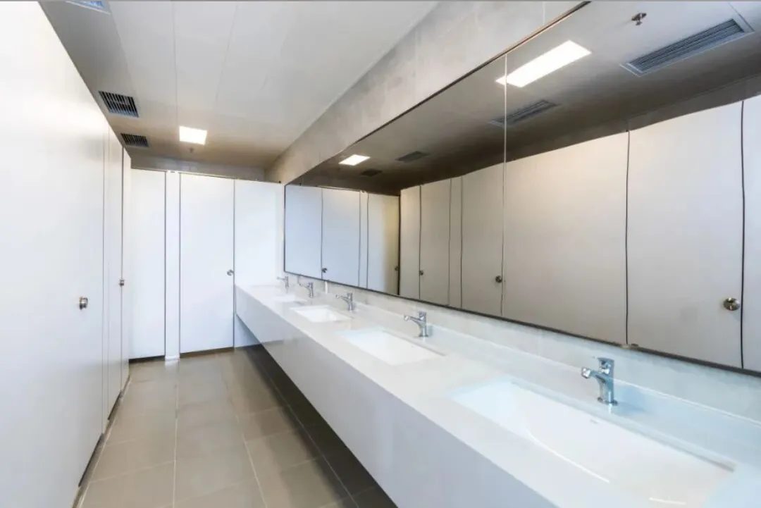 (2)配置:宿舍13层高,配备7部电梯、储物柜、空调、饮水机、洗衣区等设施,每两间共用1套卫生间和阳台,可满足5人同时使用。