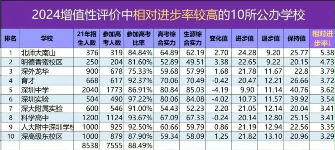 2024 年,明德香蜜校区在增值性评价中排名第二;初中部成绩尤为突出,长期位列福田区中考前三,公办普高录取率超 90%,相较之下高中部的发展仍有待提升。