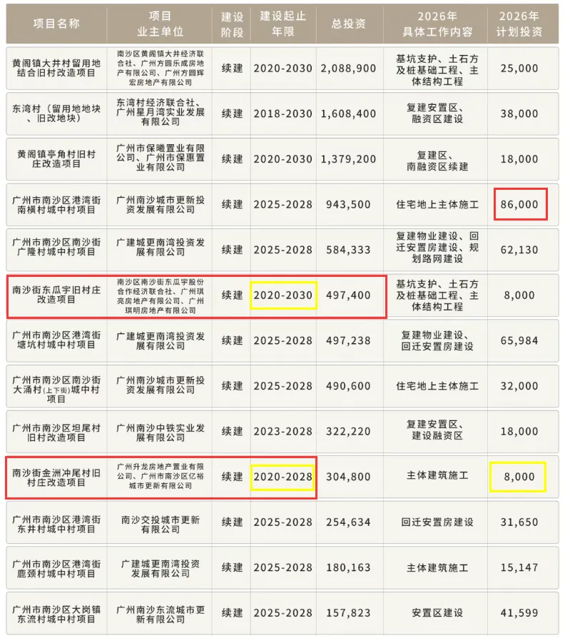 最受关注的应该是金洲冲尾村旧村庄改造项目了,今年要继续进行主体建筑施工,但投资金额依旧是可怜的8000万。很明显,这个和东瓜宇旧改项目一样,应该都是属于准备盘活的意图,所以预算只给了一个象征性的。不过相信金洲冲尾村旧改今年应该是有望动起来的,因为项目建设是2020-2028,意味着旧改要在两年内完成,今年不动的话应该是来不及的。