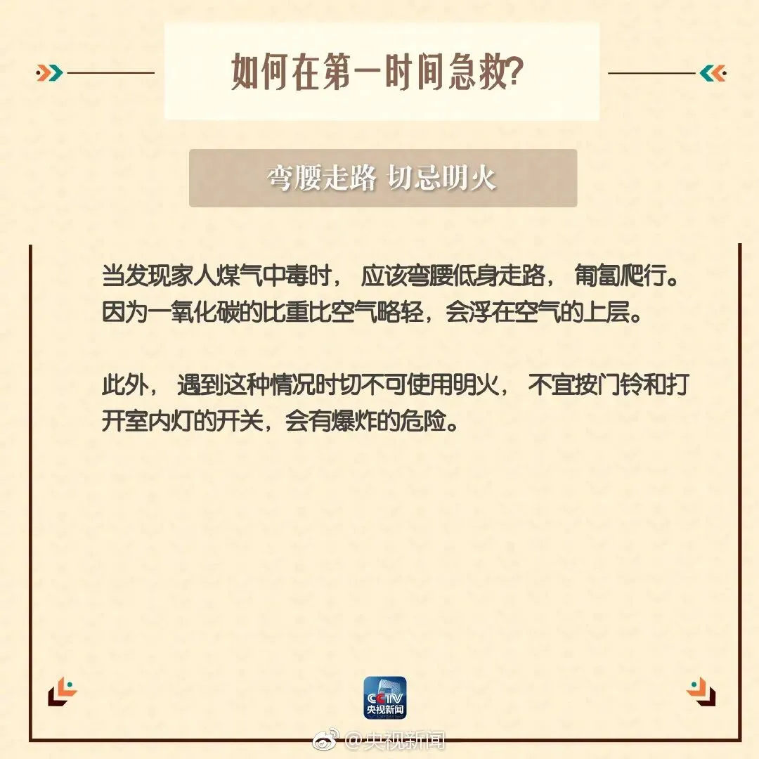 危急时刻,父亲一顿操作:迅速关闭燃气阀门、开窗通风,将孩子转移至通风处保暖,并拨打120。