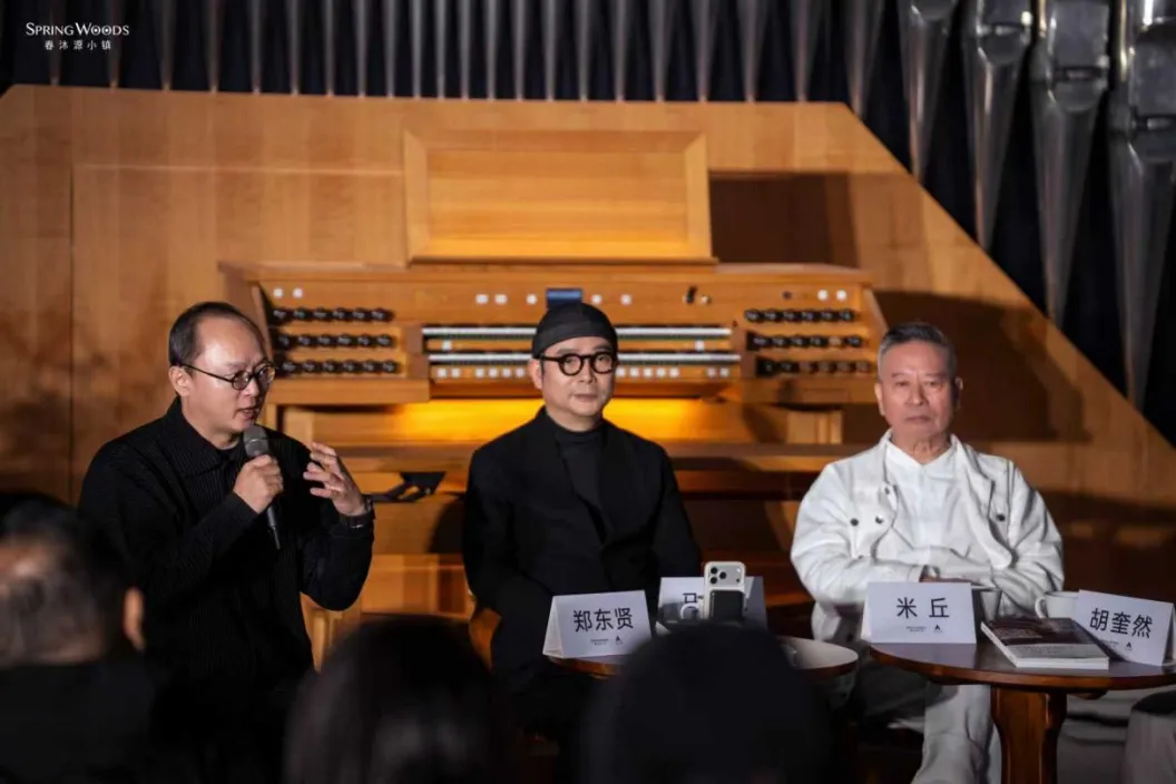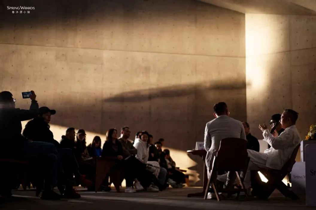 在论坛的核心环节,三位嘉宾从不同维度解读艺术建筑的价值。作为策展人,马卫东详解“何以为诗”展览的精神路径——几何之诗、自然之诗、思想之诗、精神之诗、独白之诗,五个独立区域串联起安藤忠雄建筑的核心逻辑。随后,米丘接过话题,结合自身参与众多大型公共项目的经验,探讨艺术建筑的精神性与公共性。郑东贤则分享了与春沐源六年的共生故事,坦言小镇让艺术建筑不再孤立,而是融入日常的有机体,让城市中被压抑的感知得以恢复。