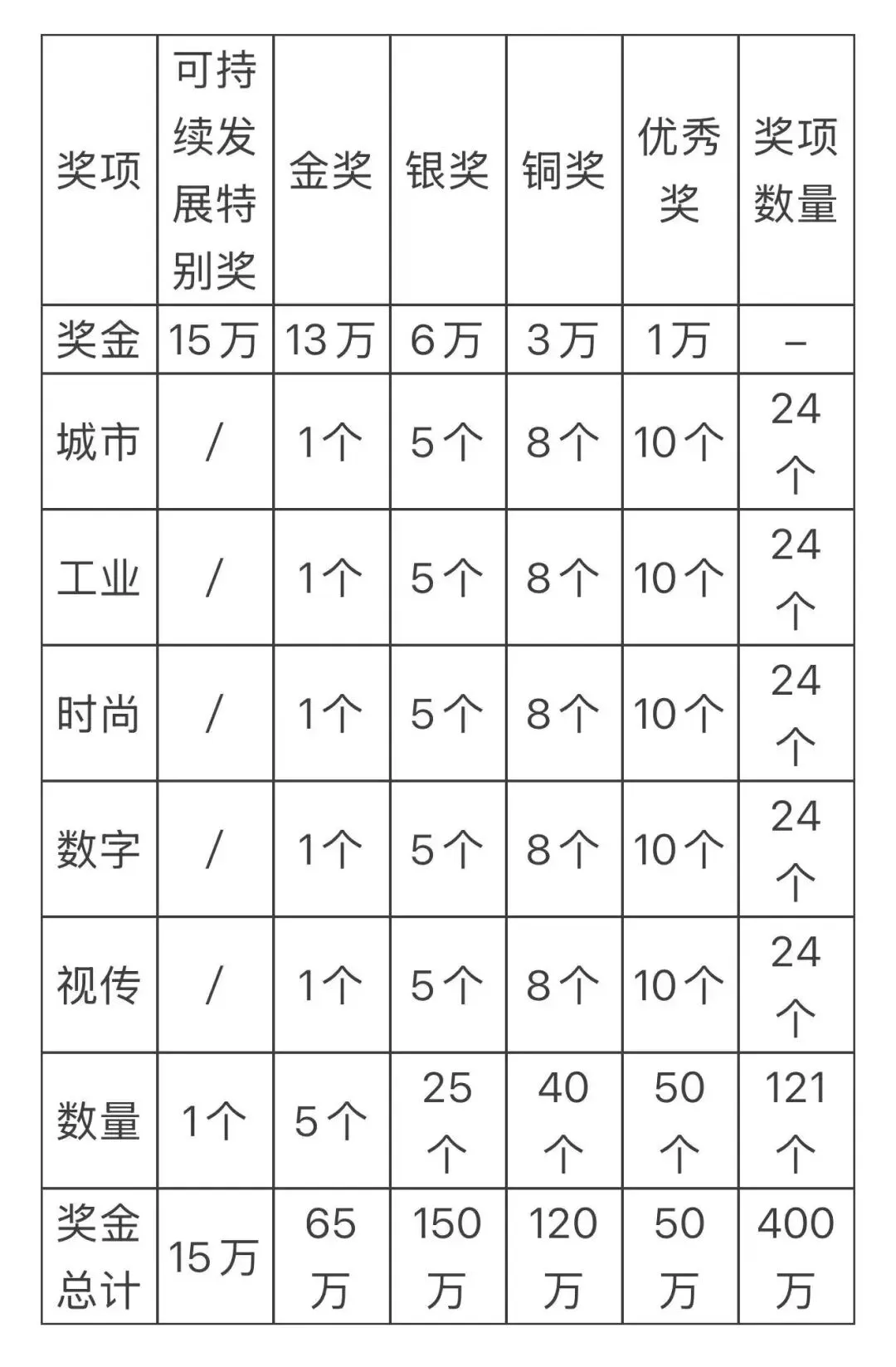(二)为强调奖项的社会公益导向以及面向未来推动构建“人类命运共同体”的定位,面向所有门类特设“可持续发展特别奖”一个,奖金15万元,由各门类的评审团主席和副主席组成特别终审团评出一个获奖者。