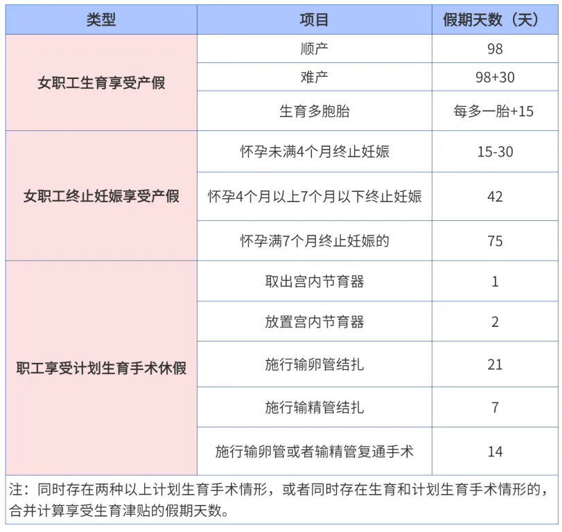 ②同时存在两种以上计划生育手术情形,或者同时存在生育和计划生育手术情形的,合并计算享受生育津贴的假期天数
