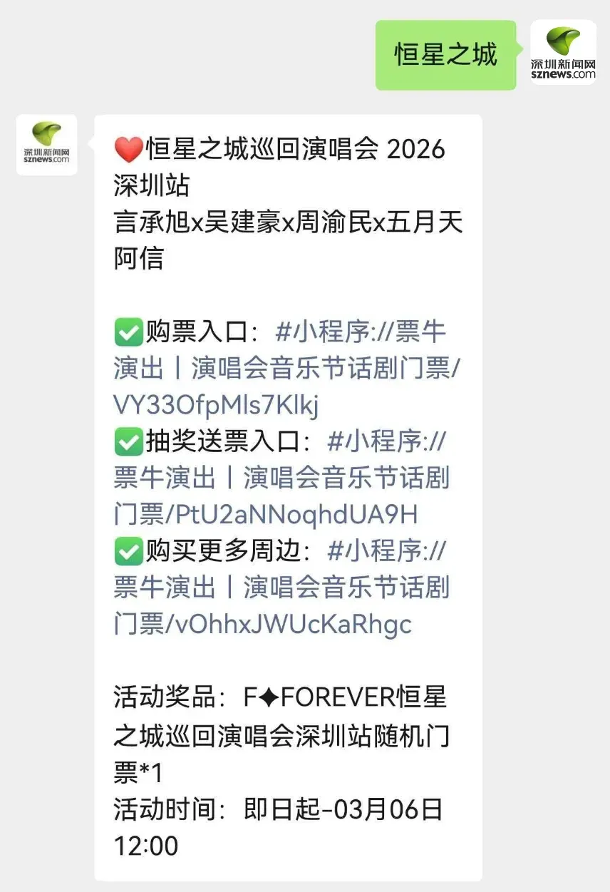 2026年3月6日12:00前完成上述操作的用户即有机会获得F✦FOREVER恒星之城巡回演唱会