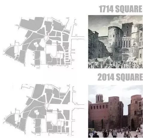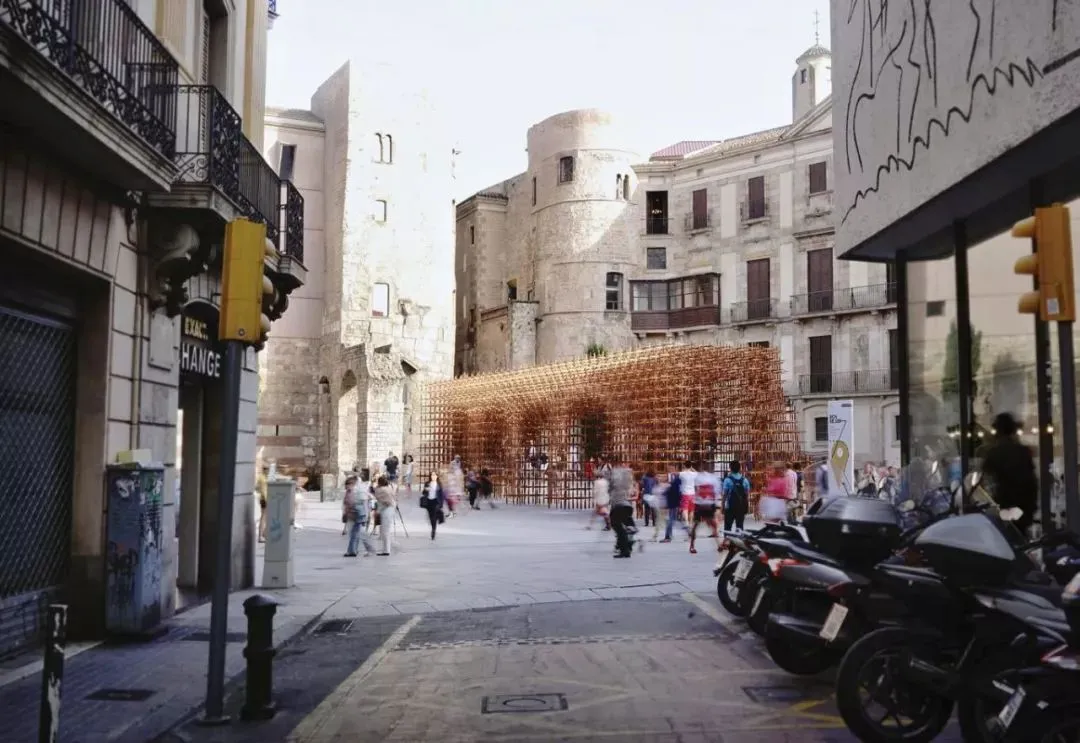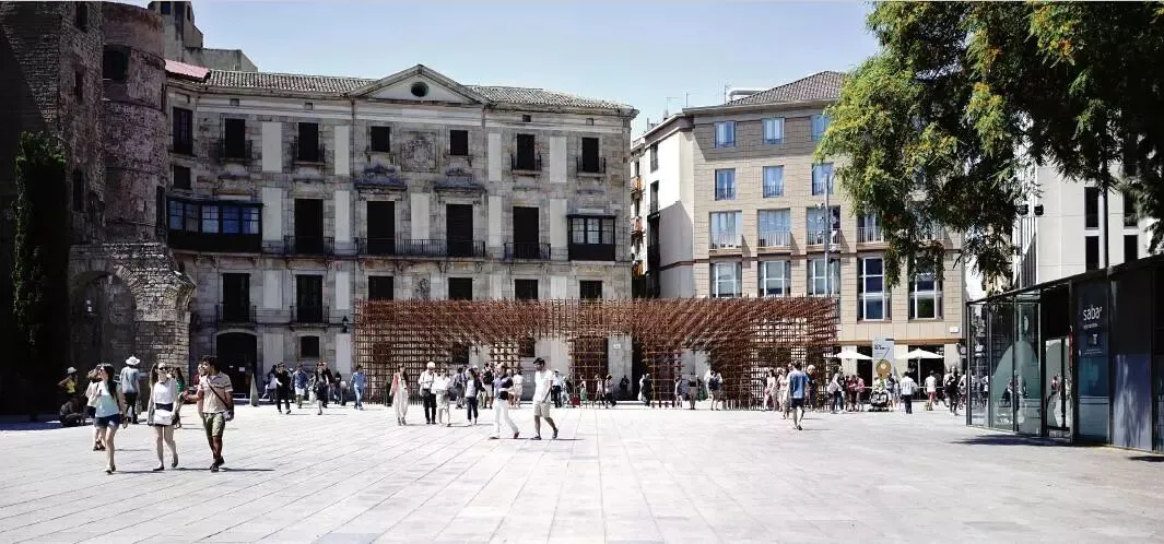 2014 年,巴塞罗那举办城市陷落300 周年的城市纪典。由米拉莱斯基金会(Fundació Enric Miralles)发起策划,选择7 个当代国际领军的建筑师团队与国际知名建筑学院合作,为巴塞罗那7 个历史性的公共空间设计纪念性公共装置。都市实践应邀在巴塞罗那城市中心的古老广场Plaza Nova 建造主题为“身份馆”的城市装置。