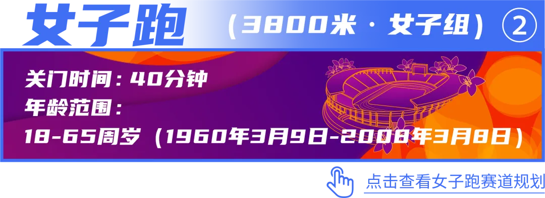 (4)女子跑:面向女性跑步爱好者公开报名,年龄限18-65周岁(1960年3月9日-2008年3月8日内出生);