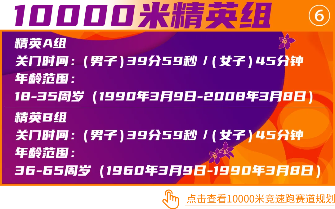 (1)10000米竞速跑精英A组、精英B组需提供近两年A/B类全马(半马)完赛证书,成绩需在规定时间内。全马(半马)资料提供要求如下(满足其一即可):