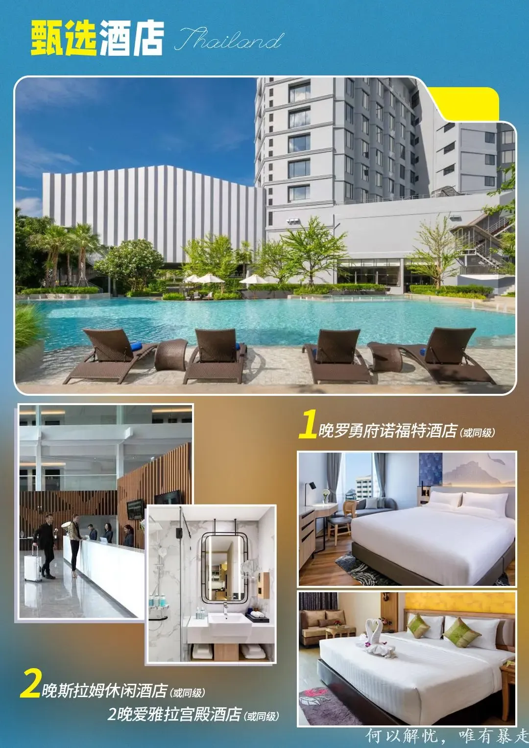 早餐:酒店含早午餐:盛泰澜国际自助餐 晚餐:暹罗新天地自理