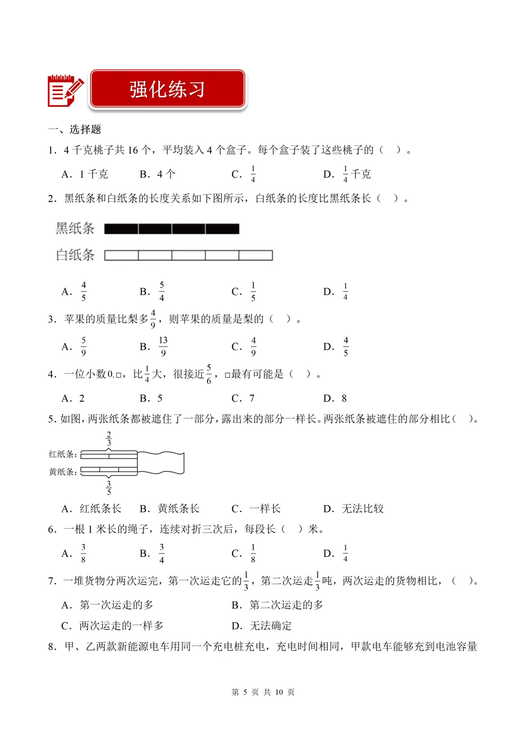 第5讲 分数的意义(8个知识点+6个易错点+40题强化练习)