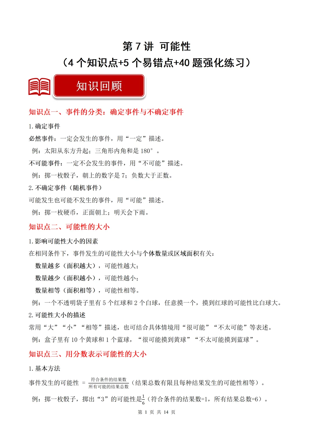 第7讲 可能性(4个知识点+5个易错点+40题强化练习)