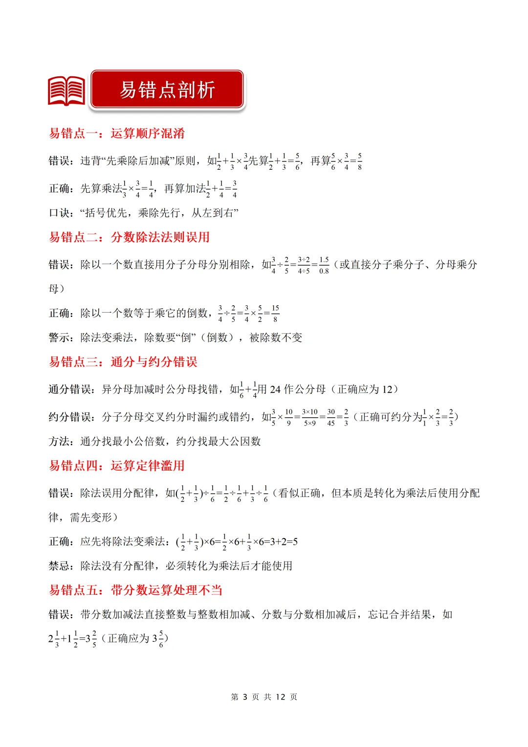 第2讲 分数混合运算(4个知识点+8个易错点+50题强化练习)