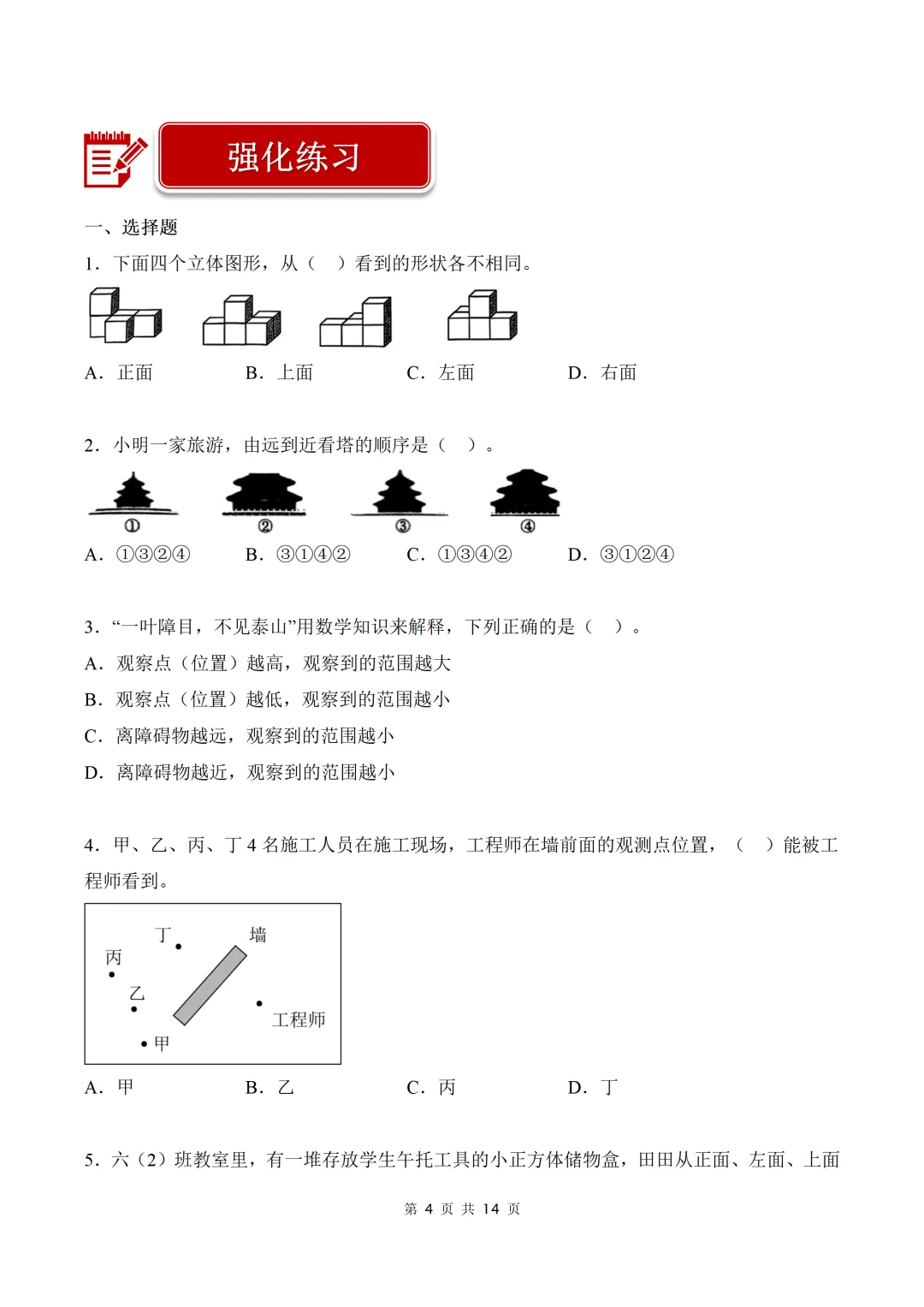 第3讲 观察物体(4个知识点+3个易错点+40题强化练习)