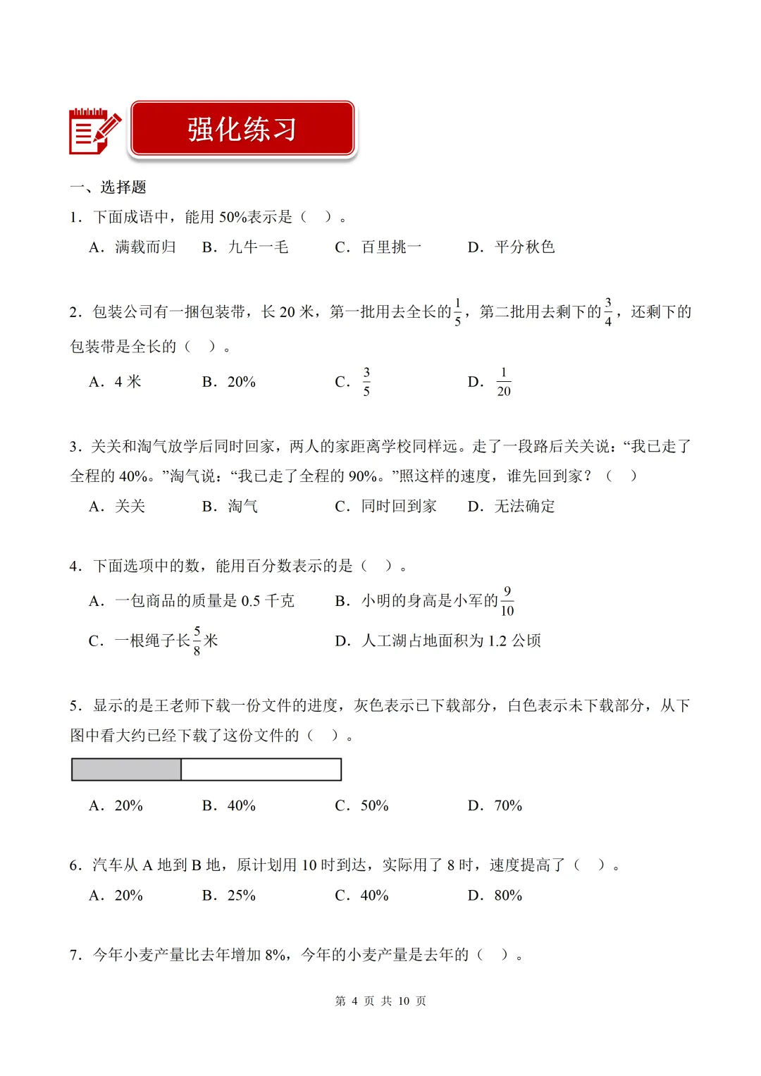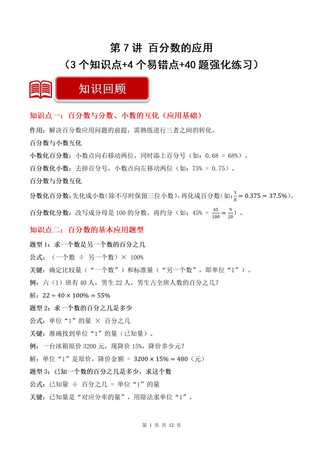第4讲 百分数(4个知识点+4个易错点+40题强化练习)