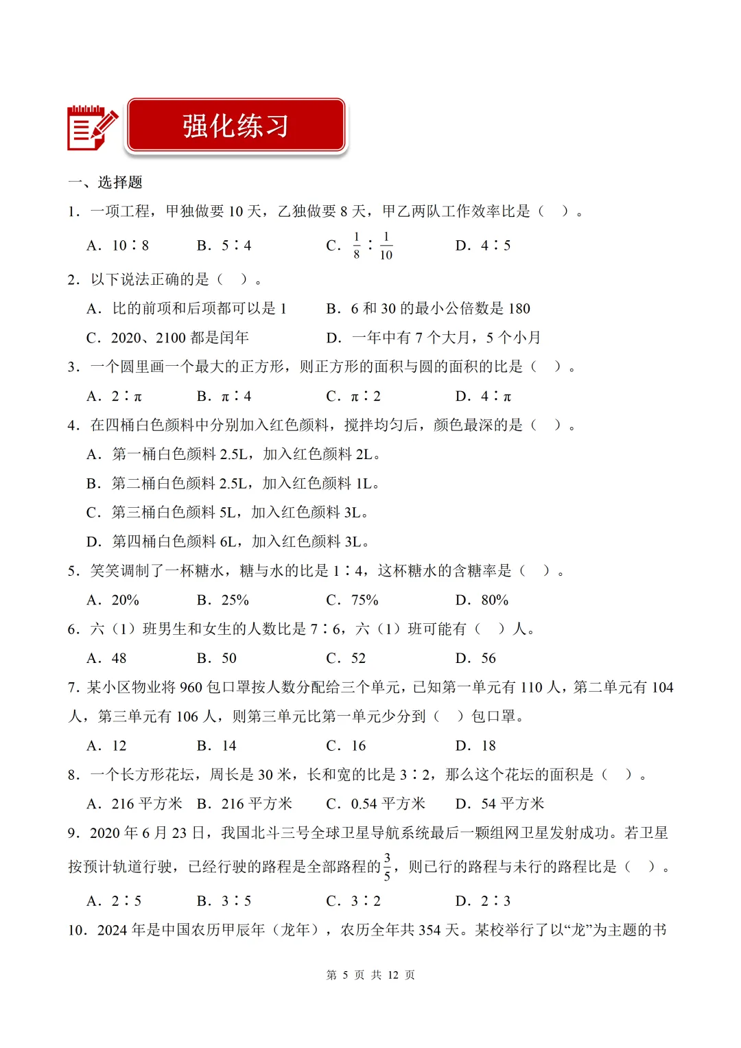 第6讲 比的认识(4个知识点+5个易错点+50题强化练习)