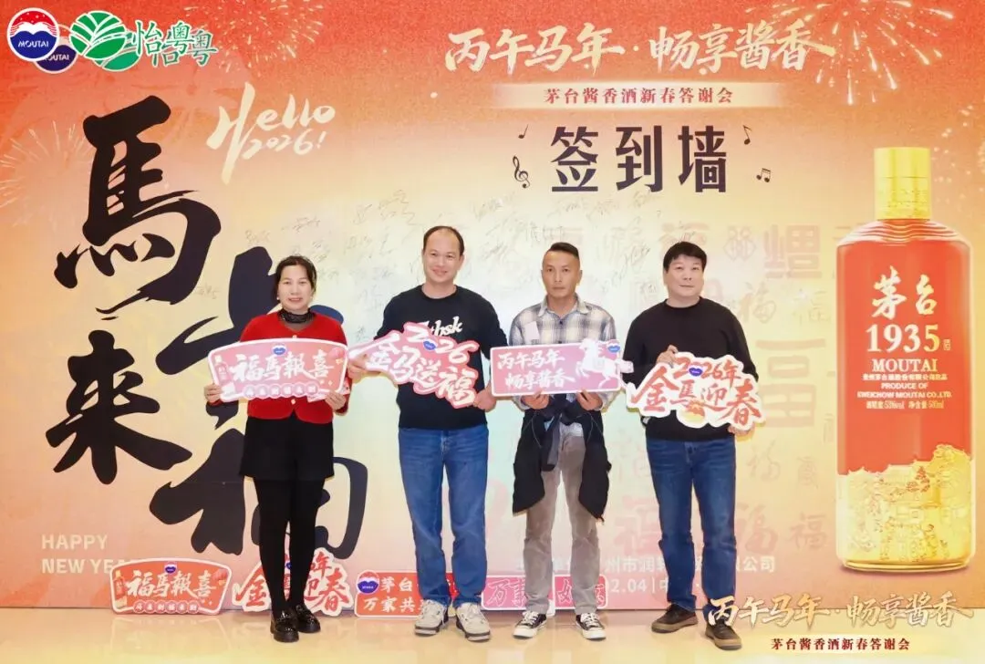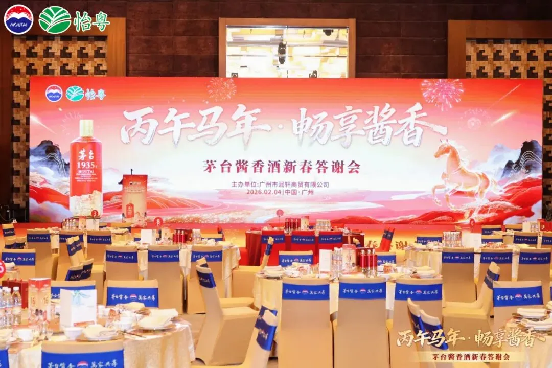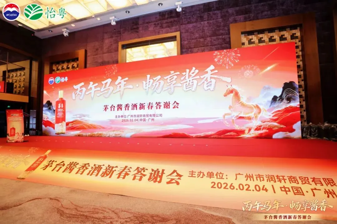 金樽溢香,骏马踏春。2026年2 月 4 日,广州市润轩商贸有限公司在广州市海航威斯汀酒店主办的“丙午马年,畅享酱香”茅台酱香酒新春答谢会”温情启幕。重要客户、合作伙伴及经销商齐聚一堂,共品茅台 1935 佳酿,共话新春美好愿景。