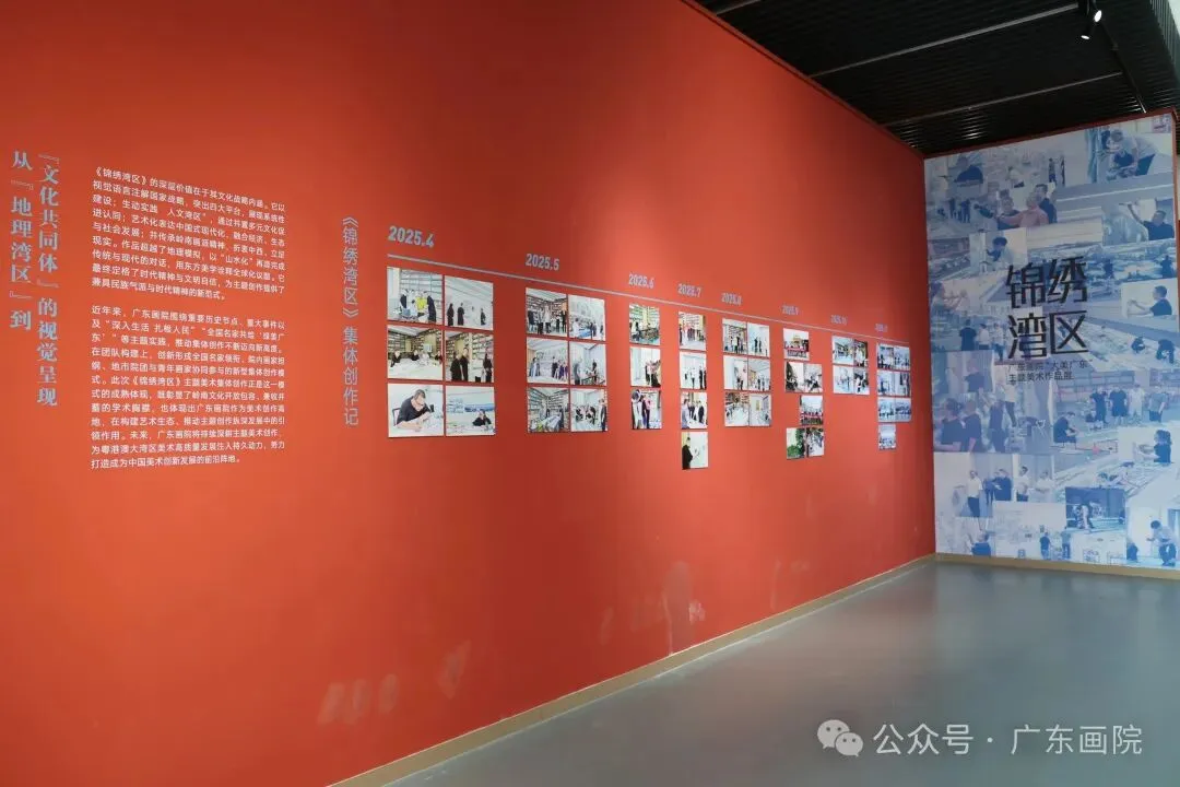 作为广东特色主题创作重点项目,展览以“锦绣湾区”为核心,汇聚全国及粤港澳大湾区“9+2”城市艺术名家的精品力作,涵盖中国画、油画、版画、水彩画等多个门类。展览通过“时代华章”“艺汇湾区”“文脉相通”“云山笔耕”四大板块,既展现岭南山川灵秀、湾区都市蓬勃气象,也诠释粤港澳三地文化交融的共生之美,其中《锦绣湾区》《文脉薪传——香江大营救》两幅大型集体创作,以精湛技艺彰显史诗气质,同步展出的创作手稿、草图等,更能让观众感受艺术创作的匠心打磨。
