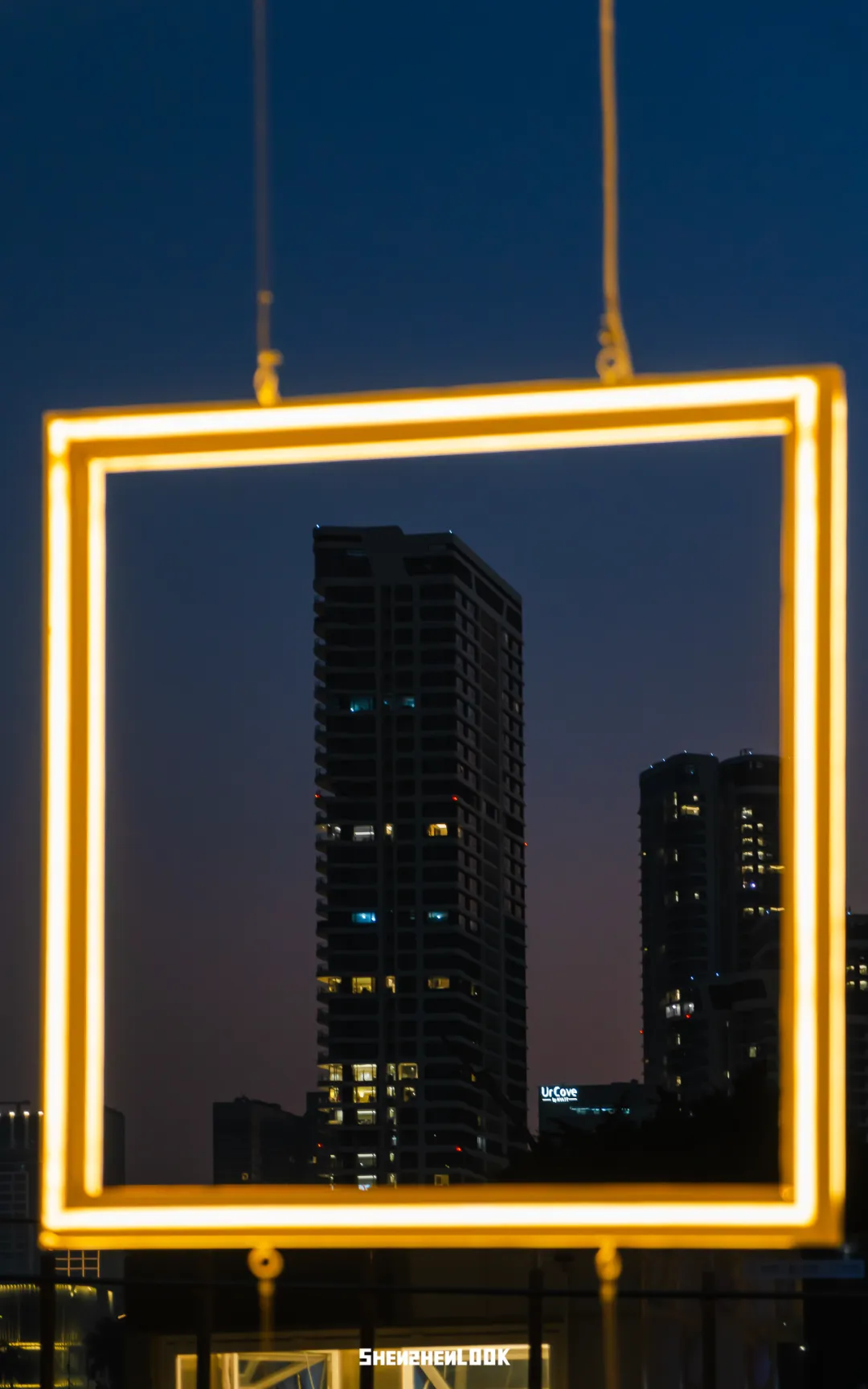 入夜后,在山海城市的环抱中,灯屋亮起。窗户框出一片景色,屋内是小家,屋外是大家。