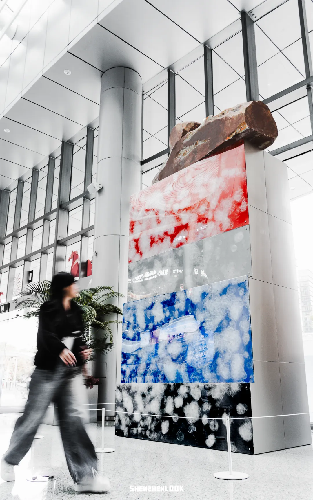 层层色彩如潮汐涨落,顶部的岩石象征着城市拓荒时的厚重,柔韧的蚕丝则是深圳改革开放史的蜕变隐喻,是艺术家在其独特见解下呈现的“新湾流”。