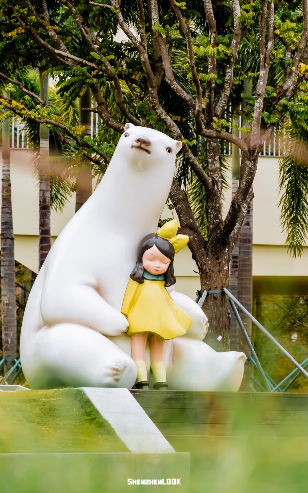 艺术家贾晓鸥《白夜童话》系列中的一件作品,灵动的小女孩靠在大熊怀中,做着酣甜的梦,安全感十足。作品可爱简单,为游人们打造了一处小小梦幻童话。