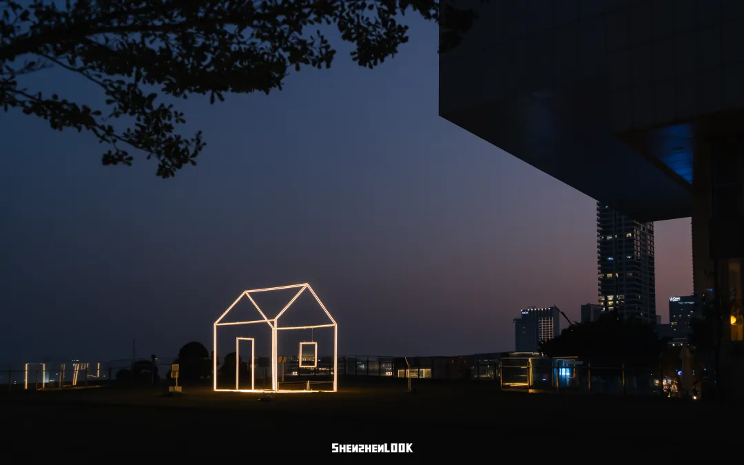 坐落在深圳湾畔的《灯屋》,用极简的线条勾勒出“家”的轮廓,半开放的状态欢迎每一位路过的行人走入“家”中,一如城市包容又开放的特点,也应了那句“来了就是深圳人”的口号。