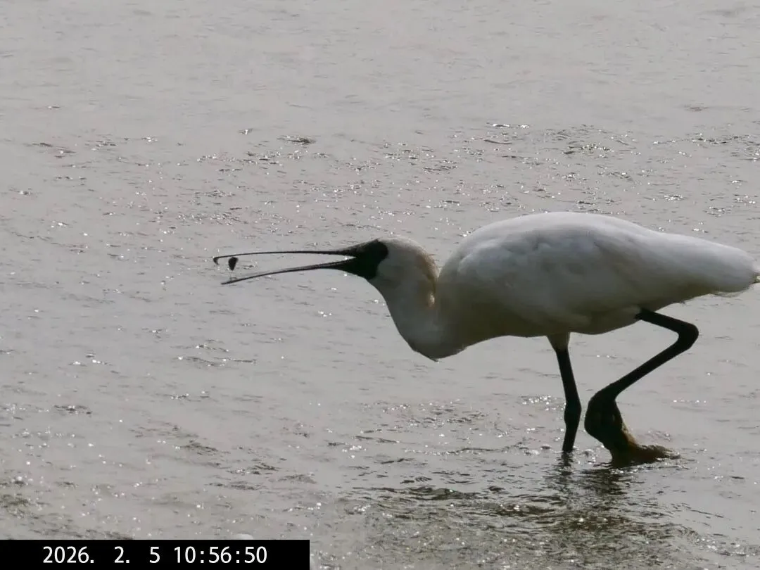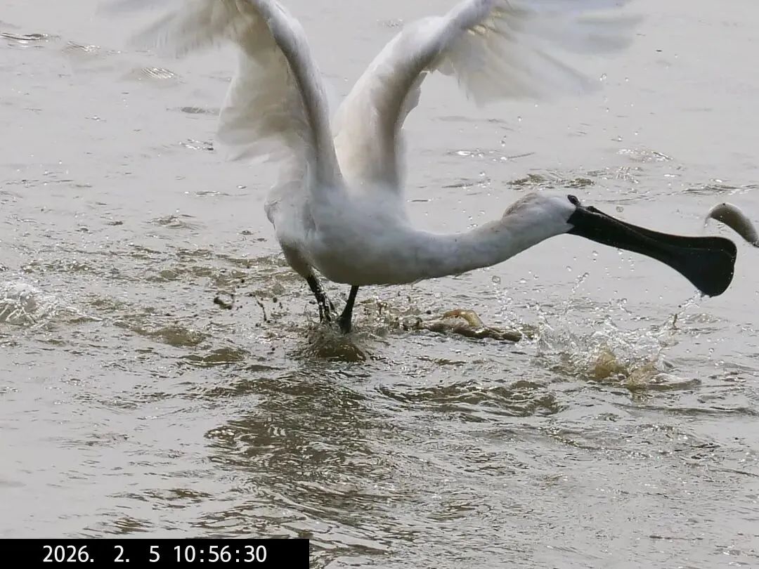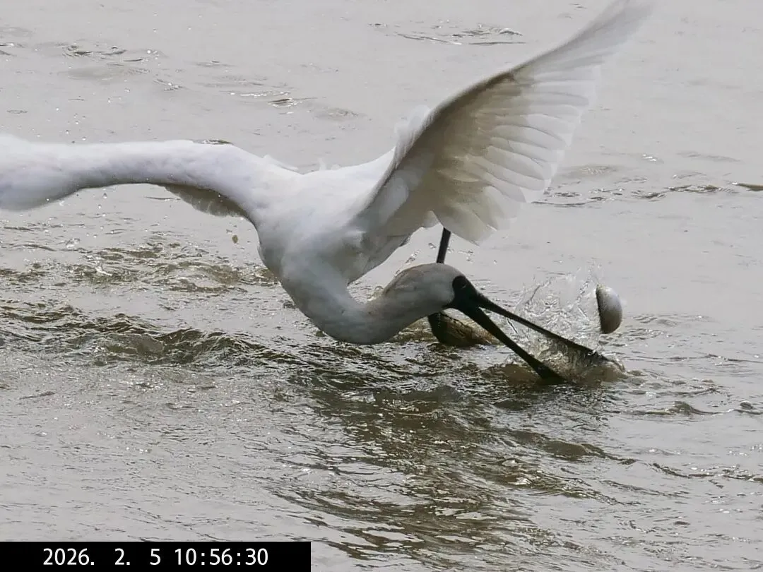 比较有意思的是,今天拍到了黑脸琵鹭捉到鱼的情形。这次捉到的是一条小鱼。↓↓