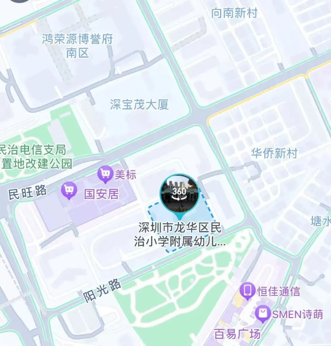 深圳市龙华区民治小学附属幼儿园是深圳市龙华区教育局下属公办幼儿园。幼儿园创办于1996年9月,位于深圳市龙华区民治街道阳光路24号,紧邻深圳北站,交通便利。占地面积4604平方米,建筑面积4381平方米,户外活动面积2704平方米。园舍建筑独立、外观设计独特,园内环境优美、庭院绿意盎然。核准规模为18个班。