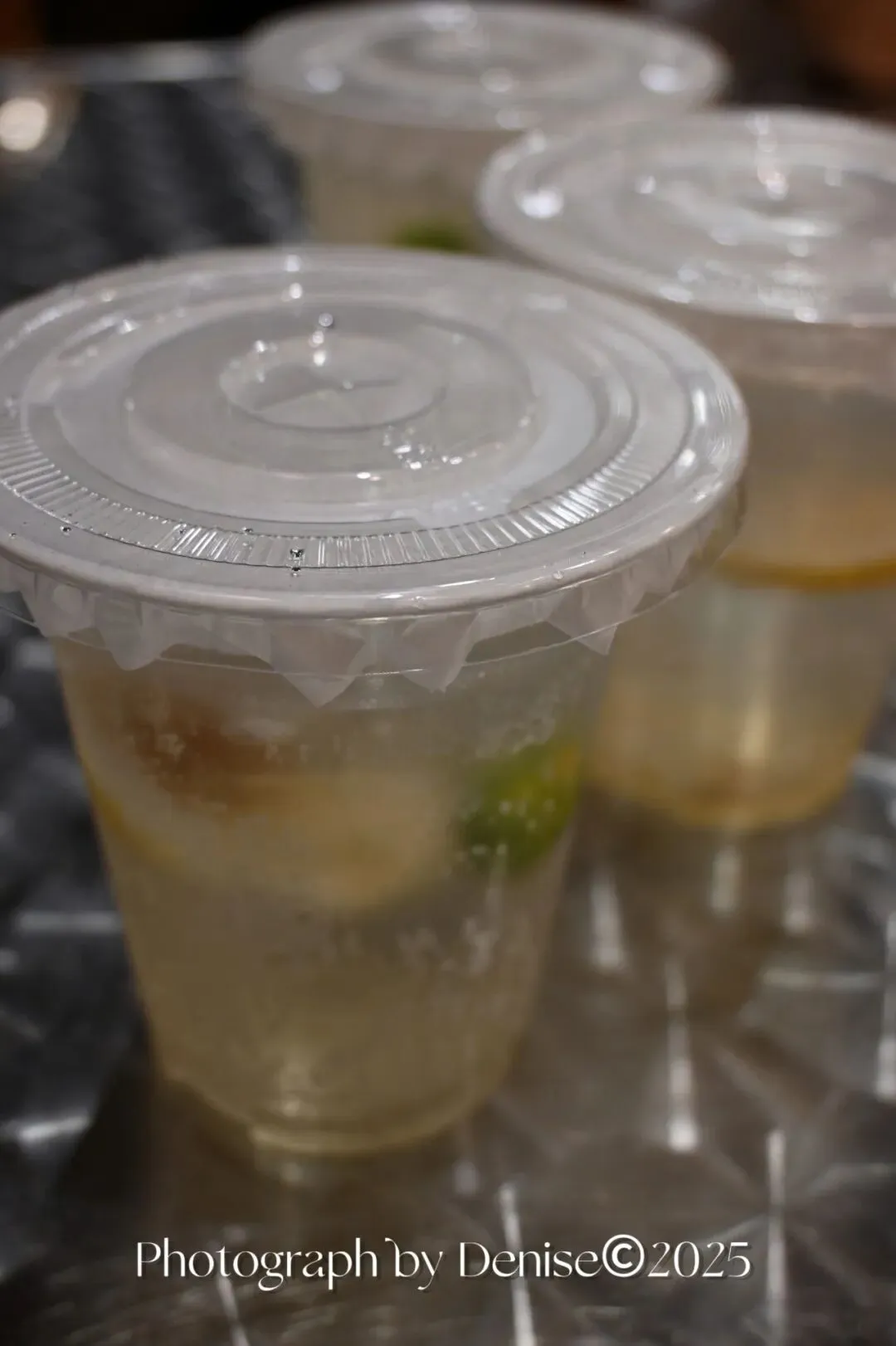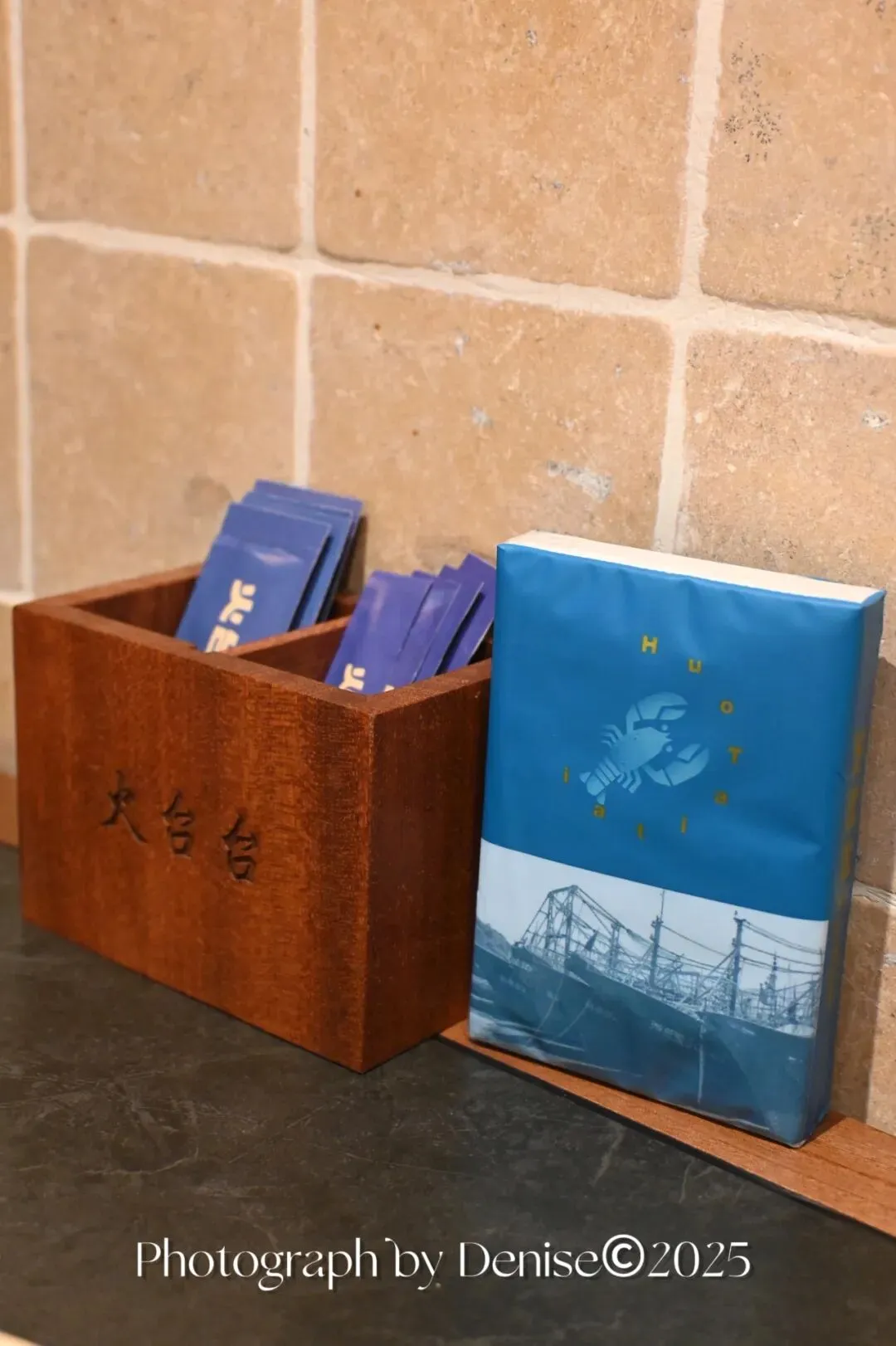 套餐还有餐前小吃「虾片」大路货,打卡送「桔仔冰水」,味道就是苏打水+桔仔;服务靠自助,自助下单、自助茶水;餐厅环境类似于网红大排档,餐位偏密。