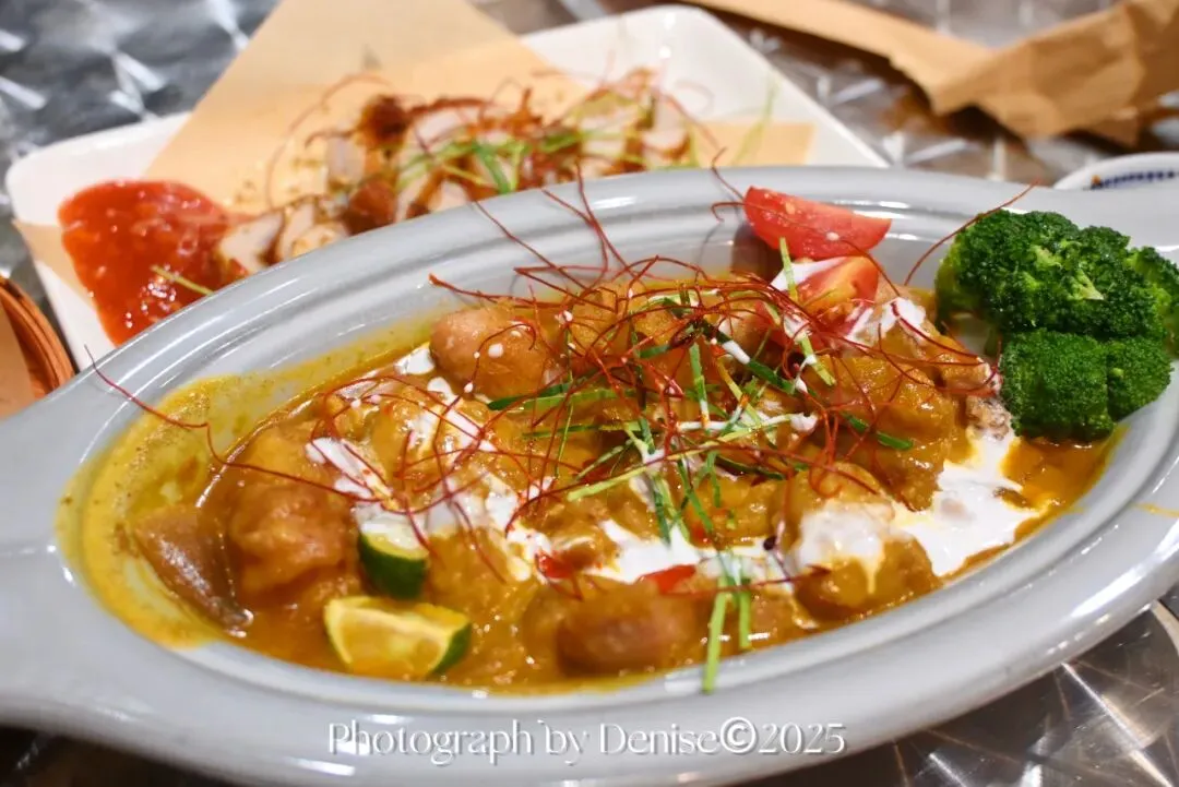 东南亚经典菜式「咖喱鸡」这里的咖喱是椰奶版,能闻到辣味但不辣,鸡肉(削)肉质软,配饭还可以。
