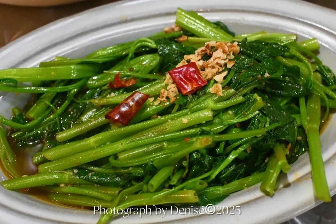 这顿饭当中就只有这碟「叁巴酱炒通菜」还可以,菜新鲜、现炒,有微微锅气。叁巴酱(Sambal )是东南亚地区的基础辣酱,搭配通菜,很惹味。