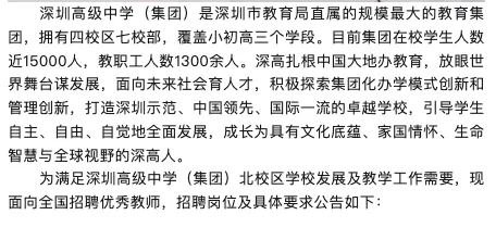 合格者以第三方购买教育服务方式录用,待遇按照深圳高级中学(集团)购买服务教师工资标准。