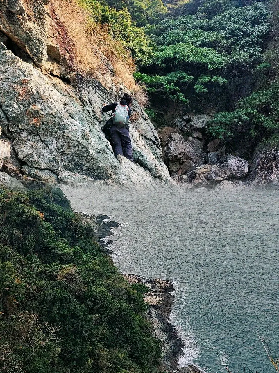 - 寻找明显小路或礁石上的足迹,开始向上攀爬至悬崖顶部。注意安全,此处易滑!
