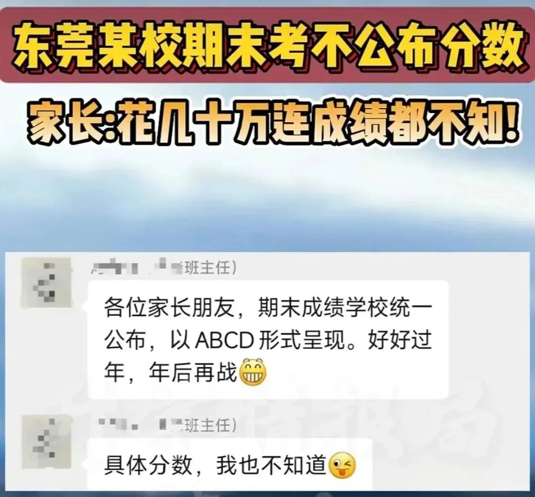 东莞一民办学校期末成绩只有ABCD等级,家长怒了:几十万学费连孩子分数都不让看?