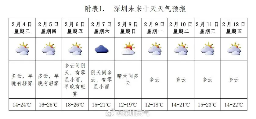 深圳本周末最低气温