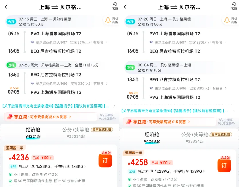 广州/上海 含税3K6起直飞往返贝尔格莱德,中转欧洲多地巴尔干地区对中国免签,塞尔维亚,黑山,波黑,马其顿,阿尔巴尼亚还可以转飞欧洲其他城市,比如巴塞罗那。可以结合塞尔维亚航空官方价格日历,找到最低往返时间组合。有兴趣的同学,可以根据塞尔维亚航空航点,找找感兴趣的航线。春促的大爆款!299一晚的九龙湖度假村/十七房 史低价通兑,周末不加价!有效期到7月1日。299元,可以换宁波周边两家亲子,风情排名第一的酒店,周末不加价!九龙湖开元品质已经不错了,十七房开元能约套房,还可以升级到独栋双床别墅!