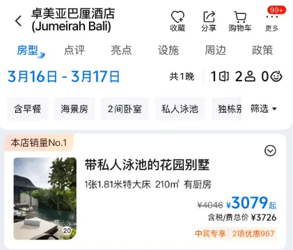 2336元,带私人泳池别墅含双早+30万印尼盾消费券