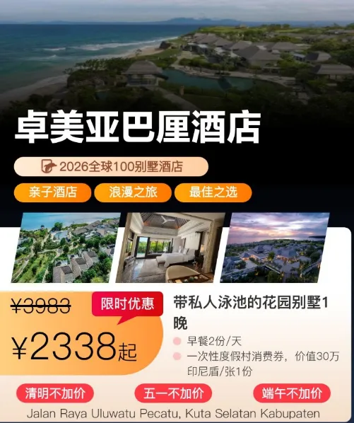 春促房券,2338一晚含双早!还有价值30万印尼盾的消费券。