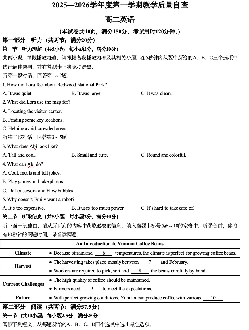 点击关注,后台发送信息【广东省东莞市2025-2026学年度第一学期教学质量自查高二英语试题】领完整word版试卷!