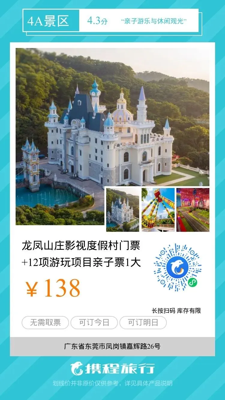 >东莞龙凤山庄度假村,1大1小套票+12项游玩项目