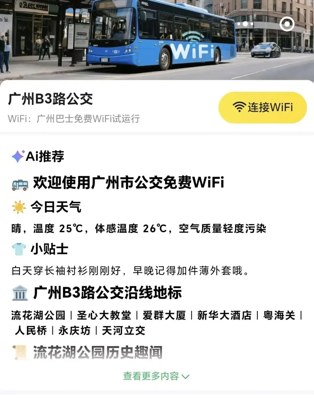 “当前设备属于首批试点,目前尚处于调试优化阶段。待运行稳定后,我们将逐步扩大免费WiFi的覆盖线路。”广州巴士集团相关负责人表示。